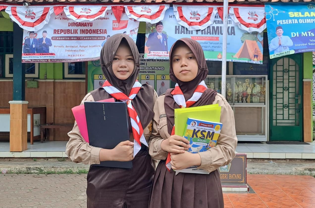 Batang (Humas) – Prestasi membanggakan kembali ditorehkan oleh dua siswi MTs Negeri Batang. Anis Sulis Setiyani dan Ines Cahya Ningrum berhasil lolos seleksi Olimpiade Madrasah Indonesia (OMI) Tahun 2025 Tingkat Kabupaten Batang pada bidang Ilmu Pengetahuan Alam (IPA). Dengan capaian ini, keduanya berhak melaju ke ajang OMI Tingkat Provinsi Jawa Tengah.