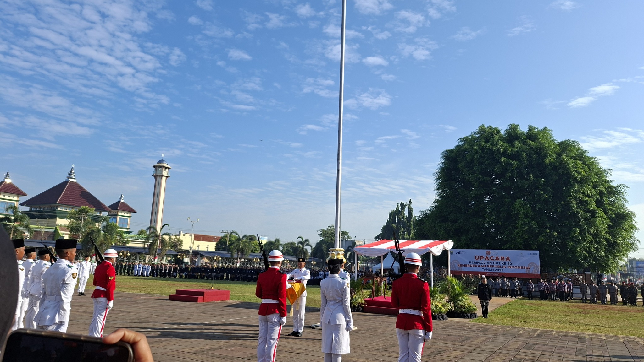 Hadir pula jajaran Forum Komunikasi Pimpinan Daerah (Forkopimda), pejabat eselon II dan III, para kepala Organisasi Perangkat Daerah (OPD), Legiun Veteran Republik Indonesia (LVRI), serta perwakilan instansi vertikal.