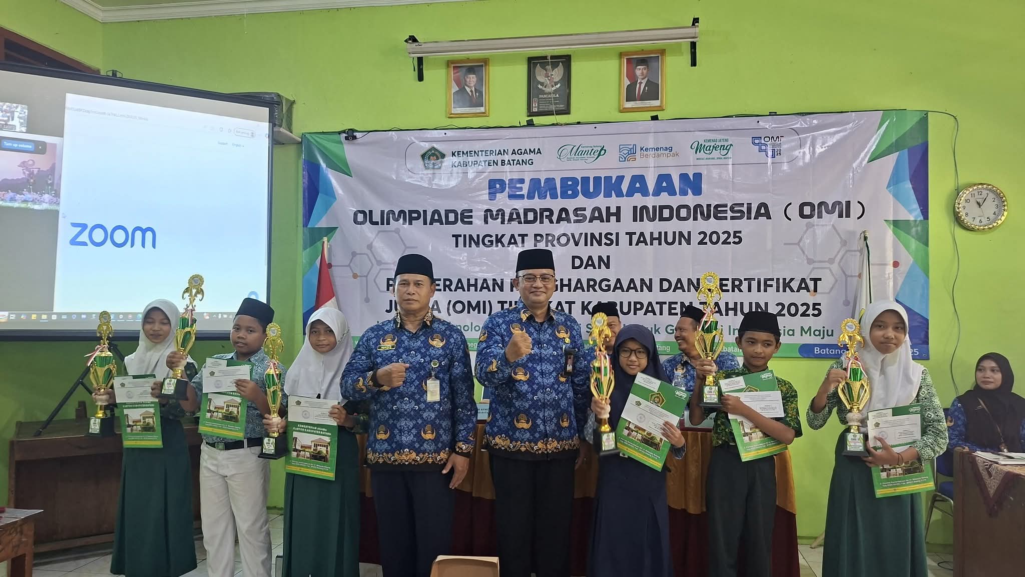 Batang (Humas) – Kantor Kementerian Agama Kabupaten Batang mengikuti acara Pembukaan Olimpiade Madrasah Indonesia (OMI) Tingkat Provinsi Jawa Tengah Tahun 2025 secara daring. Usai kegiatan tersebut, dilanjutkan dengan penyerahan penghargaan dan sertifikat bagi juara OMI tingkat Kabupaten Batang yang digelar pada Rabu (1/10/2025) di Aula MTsN Batang.