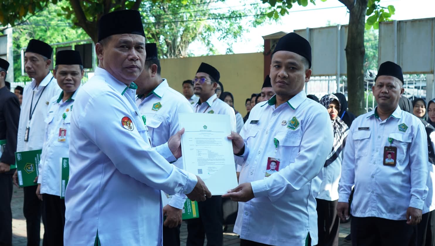Disela-sela Apel Kakankemenag kab.Batang menyerahkan SK Purna Tugas , Kenaikan Pangkat dan reword pada Guru Madrasah yang berprestasi.