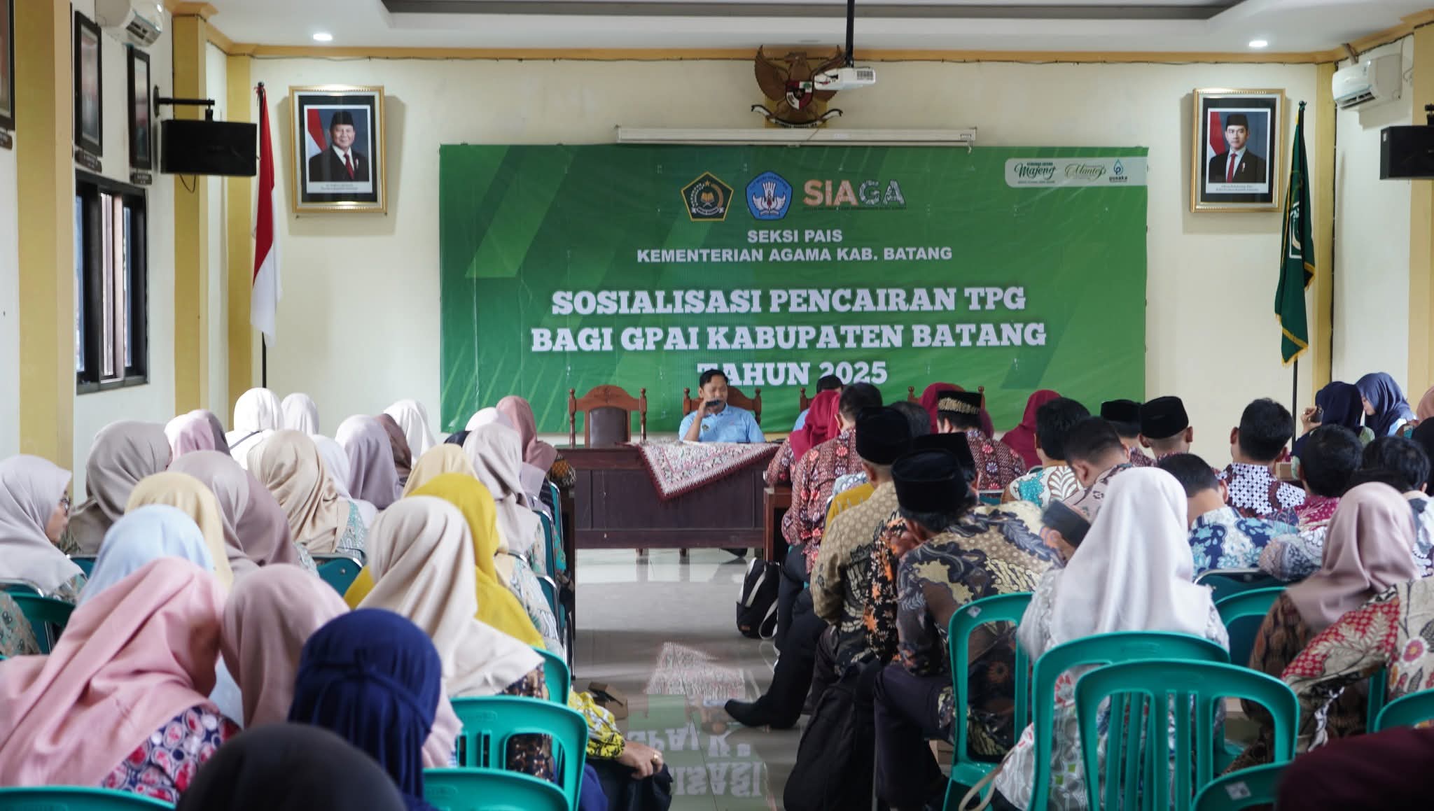 Batang (Humas)- Kemenag Batang mengadakan Sosialisasi Pencairan TPG bagi Guru PAI, Jumat (3/10/2025). Acara yang digelar di aula lantai 2 itu diikuti oleh 122 orang yang terdiri dari Guru PAI SD, SMP, dan SMA se kab.Batang. Sosialisasi diadakan untuk memberikan pemahaman mengenai pencairan TPG bagi Guru PAI yang telah mengikuti Program Pendidikan Profesi Guru (PPG).