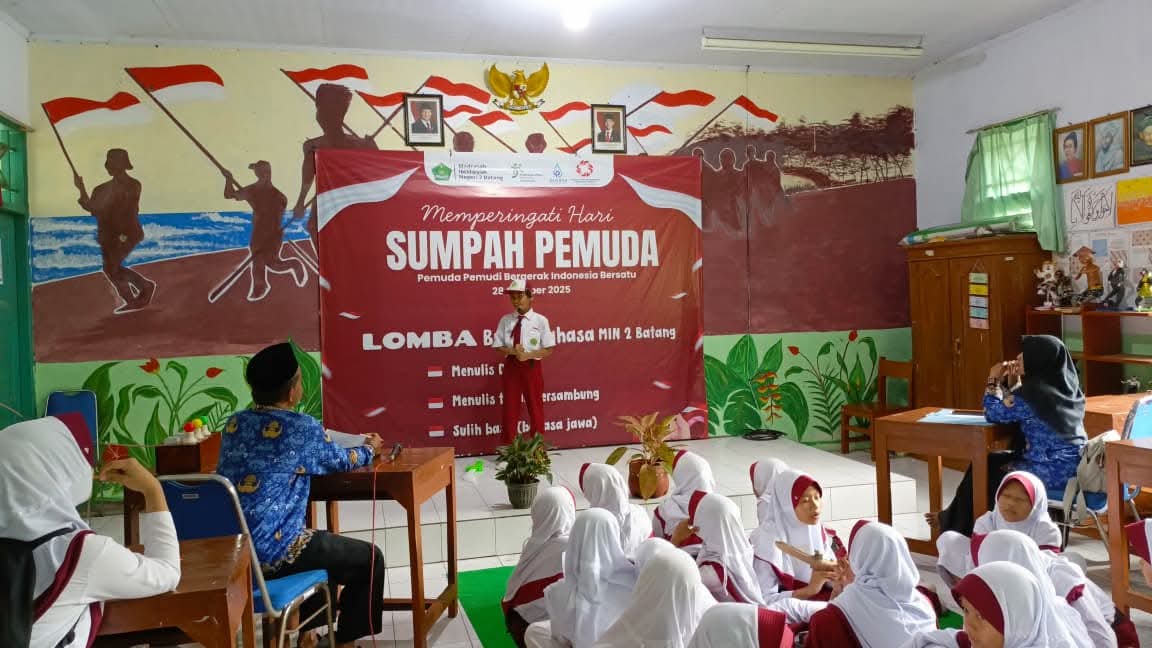 Batang (Humas) – Madrasah Ibtidaiyah Negeri (MIN) 2 Batang kembali menunjukkan semangat kebangsaan dan kecintaan terhadap bahasa melalui penyelenggaraan rangkaian kegiatan dalam rangka Peringatan Hari Sumpah Pemuda dan Bulan Bahasa Tahun 2025.