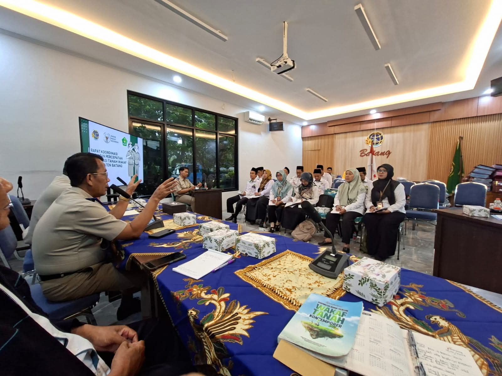 Batang (Humas) – Mewakili Kepala Kantor Kementerian Agama Kabupaten Batang, Garazawa Eko Yuni Aryanto menghadiri Rapat Koordinasi Percepatan Sertifikasi Tanah Wakaf di Kabupaten Batang yang digelar pada Selasa (27/1/2025) di Aula Kantor Pertanahan Kabupaten Batang.