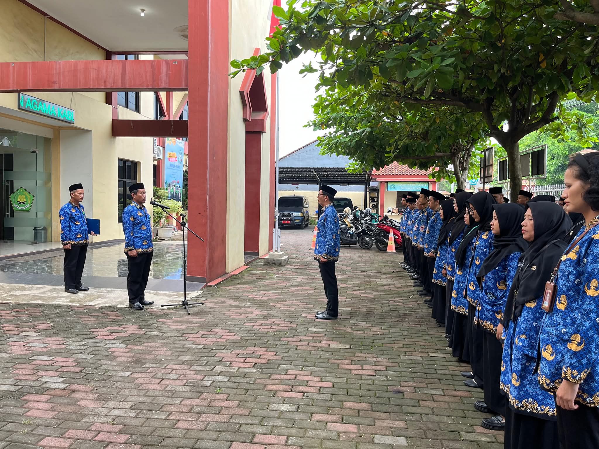 Bertindak sebagai Pembina upacara Kepala Sub.Bagian Tata Usaha Sodikin yang diikuti oleh seluruh ASN Kemenag Batang, para Kasi, Penyelenggara Zakat Wakaf, para Pengawas Madrasah dan Pengawas PAI serta seluruh ASN.