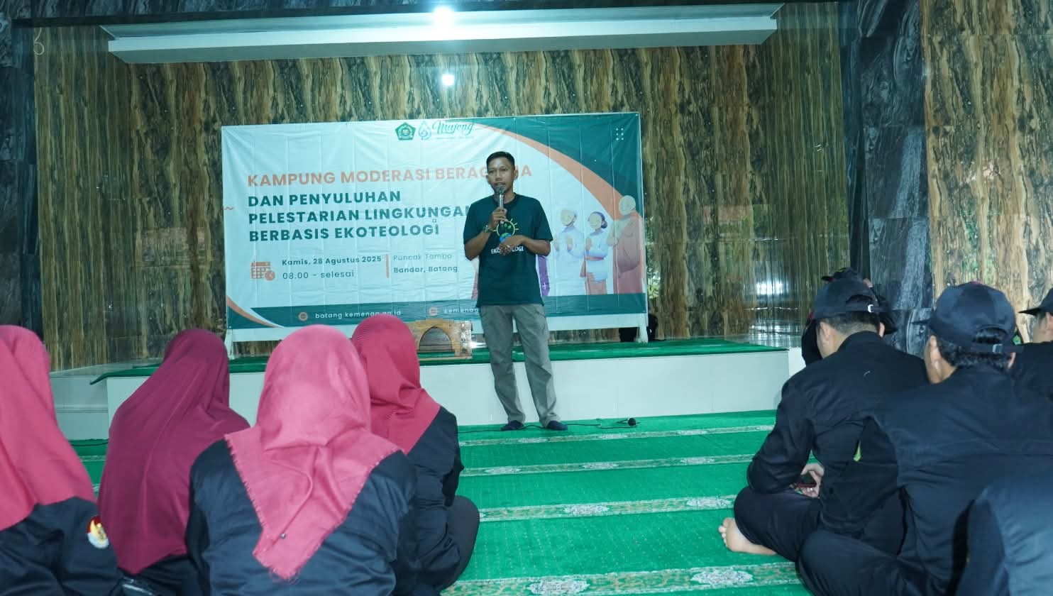 Materi kegiatan disampaikan oleh Halim Ahmaddari Dinas Lingkungan Hidup (DLH) Kabupaten Batang. Ia mengupas tentang konsep ekoteologi serta fungsi lingkungan dalam kehidupan sehari-hari, termasuk langkah-langkah praktis yang dapat dilakukan untuk menjaga alam tetap lestari.