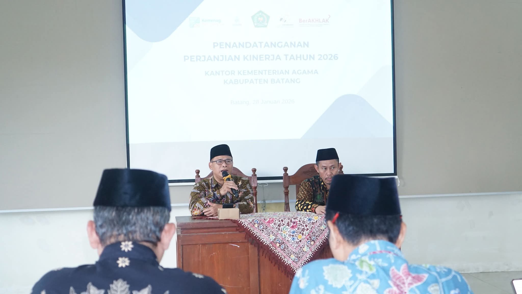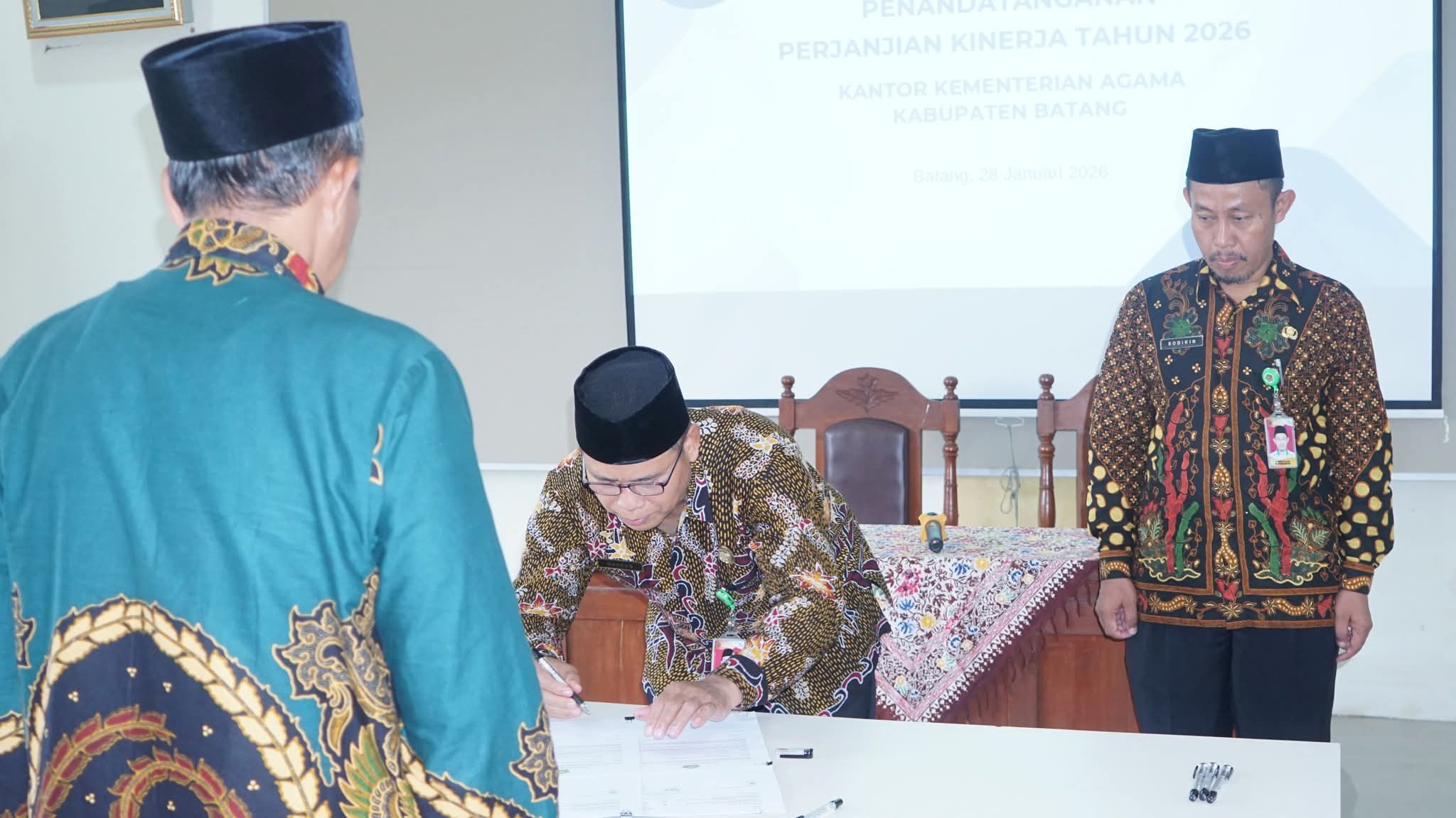 Batang (Humas) – Untuk meningkatkan sinergi dan kesiapan pelaksanaan kinerja tahun 2026, Kantor Kementerian Agama Kabupaten Batang menggelar kegiatan Penandatanganan Perjanjian Kinerja Tahun 2026 pada Rabu (28/1/2026) di Aula Lantai Dua Kantor Kemenag Kabupaten Batang.